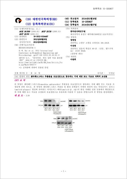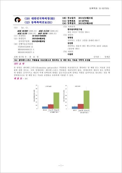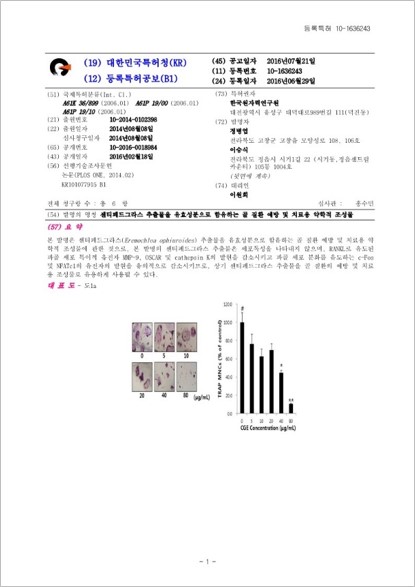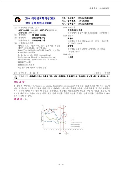 [특허 13] 센티페드그라스 추출물을 유효성분으로 함유하는 골 질환 예방 및 치료용 ...
