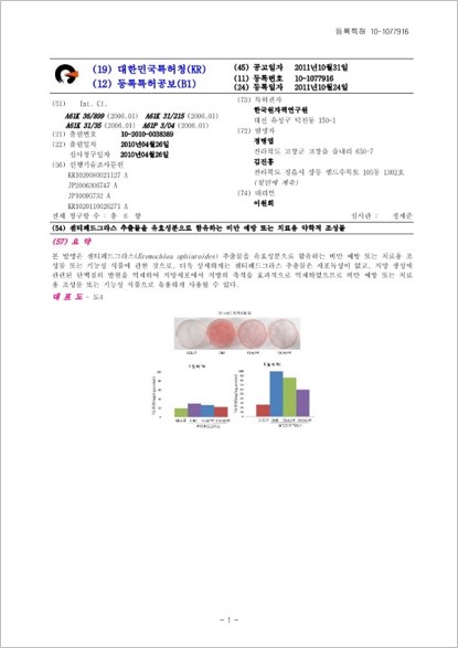 [특허 7] 센티페드그라스 추출물을 유효성분으로 함유하는 암 예방 또는 치료용 약...