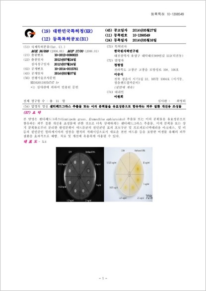 [특허 18] 센티페드그라스 발효 추출물의 제조방법, 센티페드그라스 발효 추출물 및 이를...