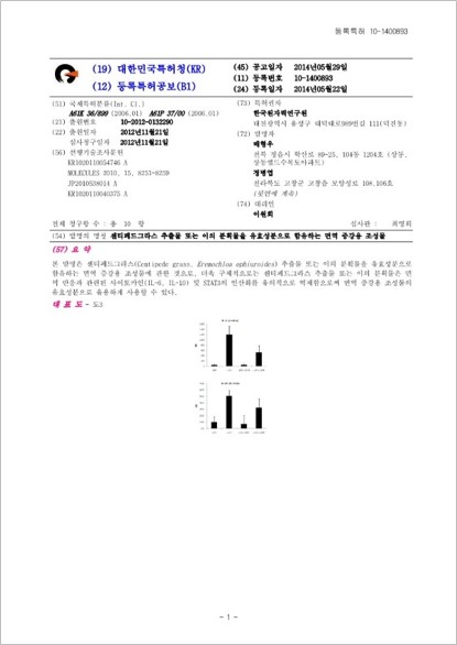 [특허 12] 센티페드그라스 추출물 또는 이의 분획물을 유효성분으로 함유하는 면역 ...
