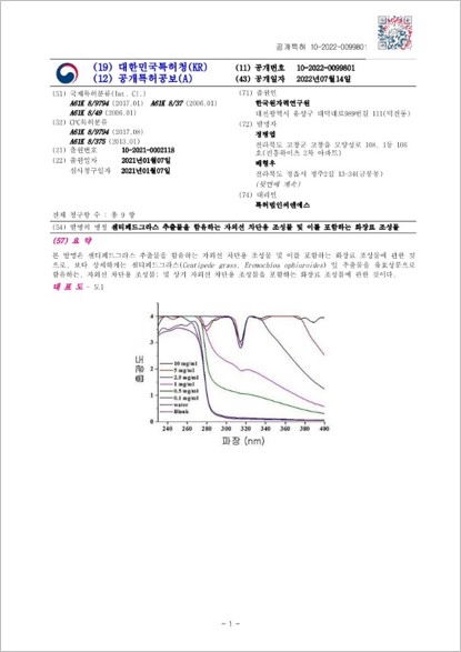 [특허 17] 센티페드그라스 추출물을 함유하는 자외선 차단용 조성물 및 이를 포함하는...