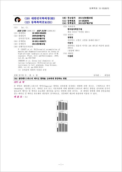 [특허 2] 센티페드그라스의 메이신 함량을 신속하게 증강하는 방법