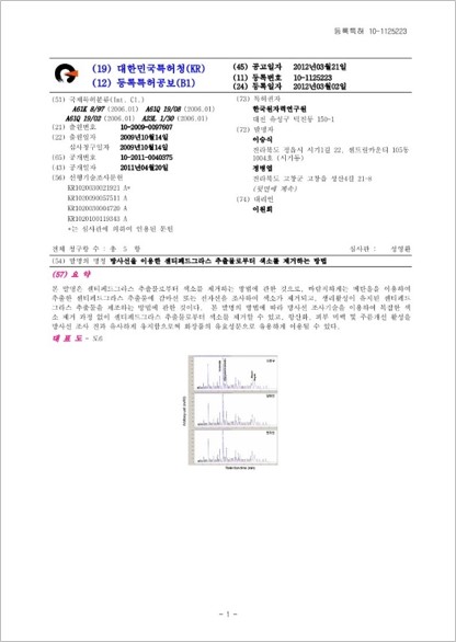 [특허 4] 방사선을 이용한 센티페드그라스 추출물로부터 색소를 제거하는 방법 ...