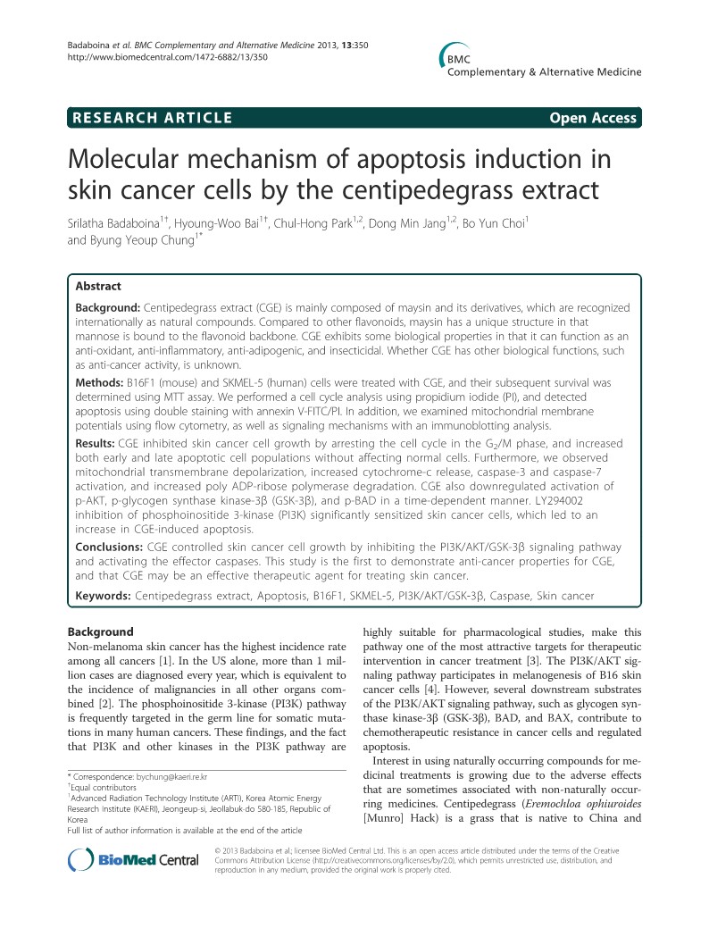 Molecular mechanism of apoptosis induction in skin cancer cells by the cent...