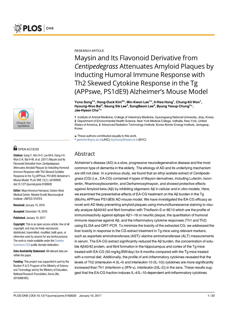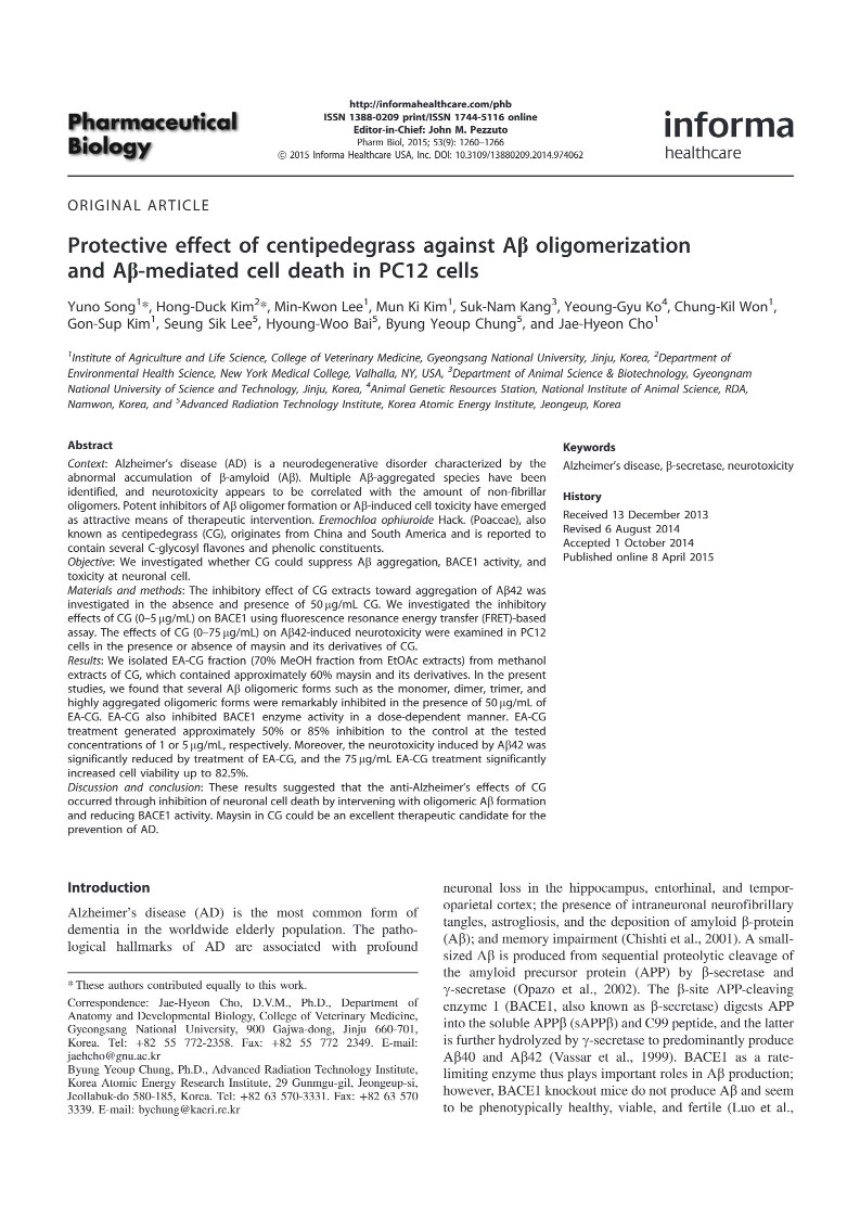 Maysin and Its Flavonoid Derivative from Centipedegrass Attenuates Amyloid ...