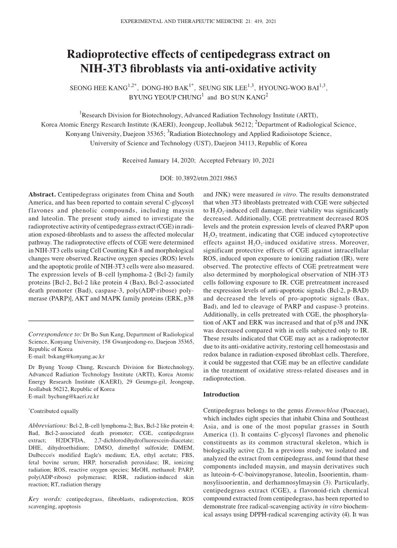 Radioprotective effects of centipedegrass extract on NIH‑3T3 fibroblasts v...