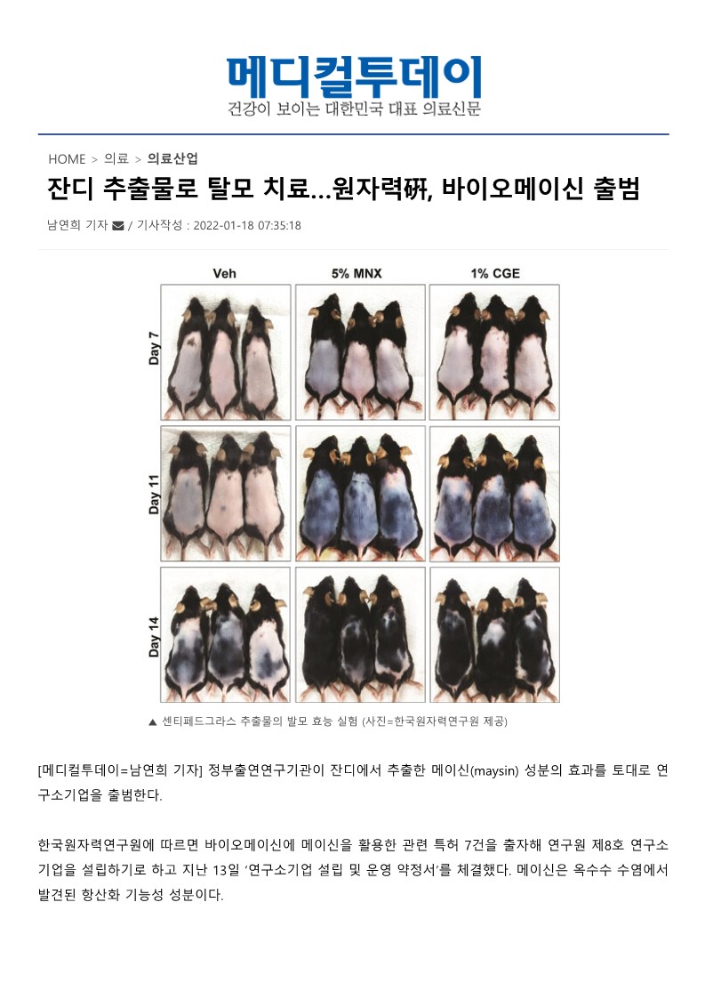 잔디 추출물로 탈모 치료…원자력硏, 바이오메이신 출범