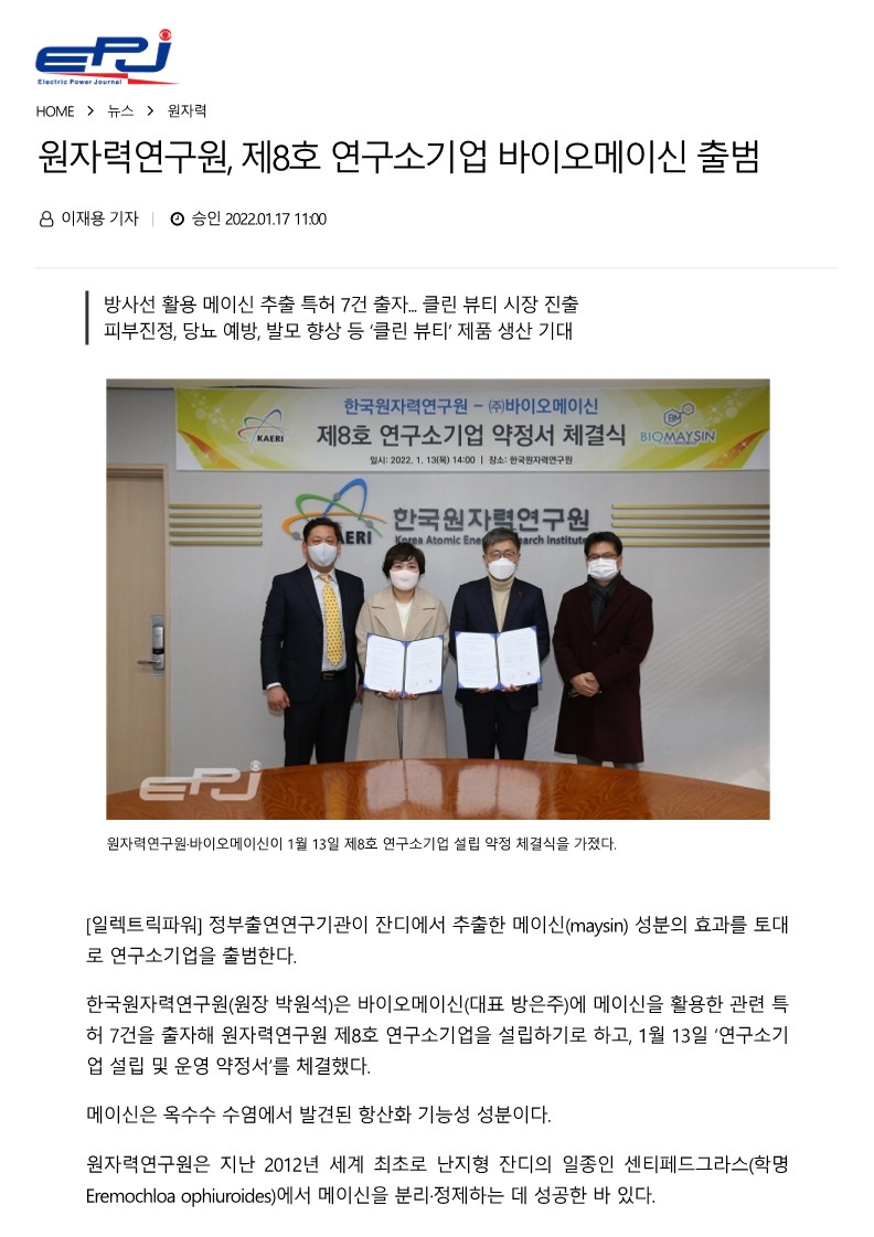 원자력연구원, 제8호 연구소기업 바이오메이신 출범