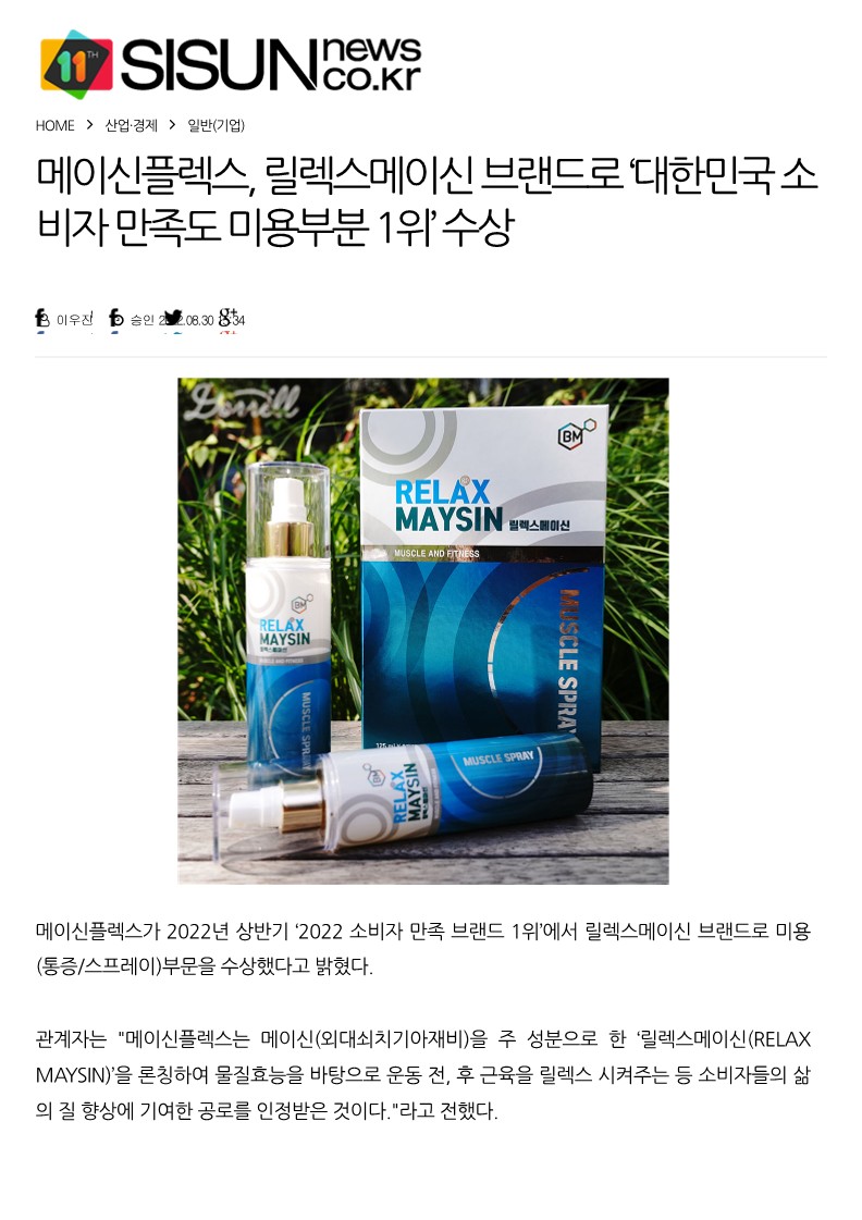 메이신플렉스, 릴렉스메이신 브랜드로 ‘대한민국 소비자 만족도 미용부분 1위’ ...