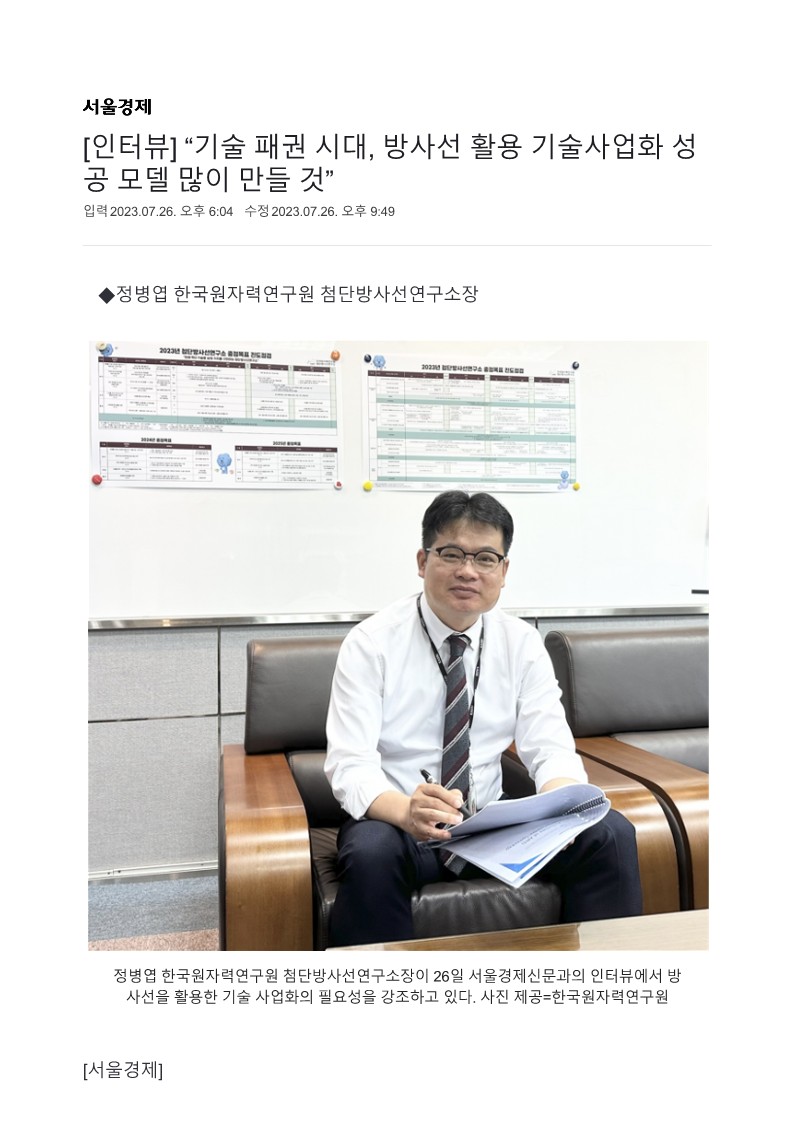 [인터뷰] “기술 패권 시대, 방사선 활용 기술사업화 성공 모델 많이 만들 것”